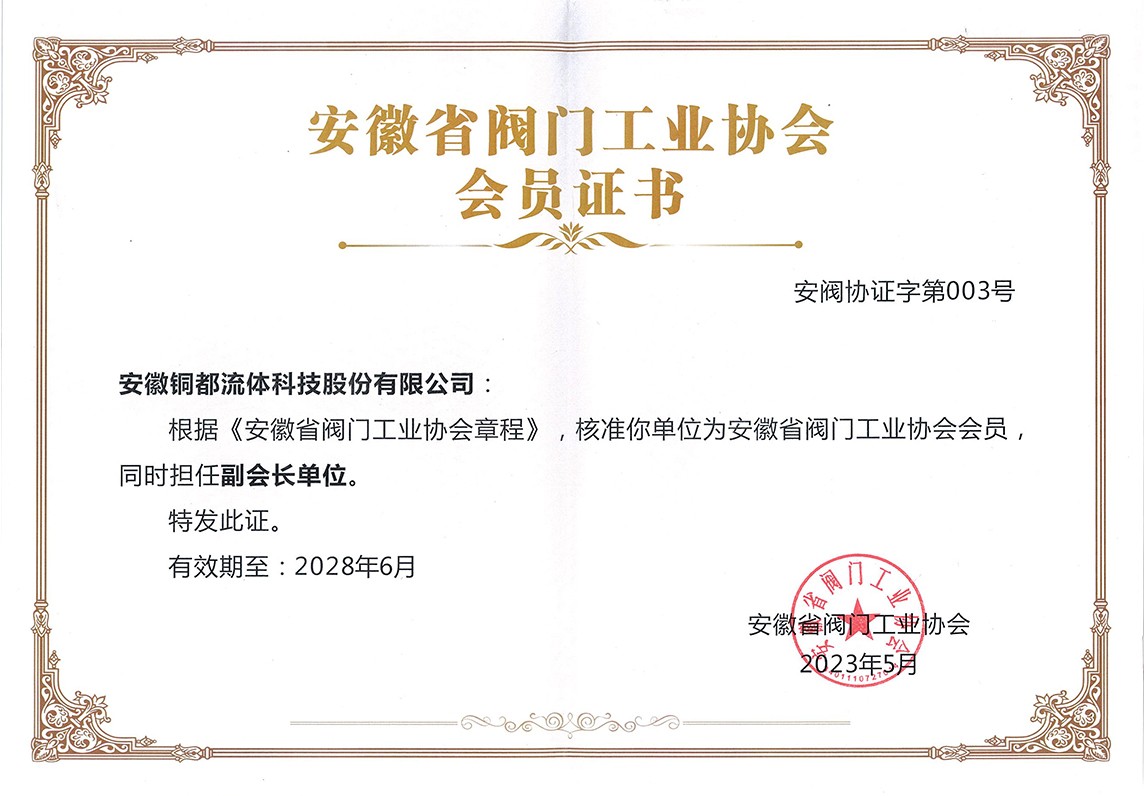 安徽省閥門工業(yè)協(xié)會副會長單位