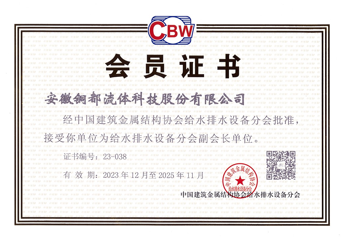中國建筑金屬結(jié)構(gòu)協(xié)會給水排水設(shè)備分會副會長單位