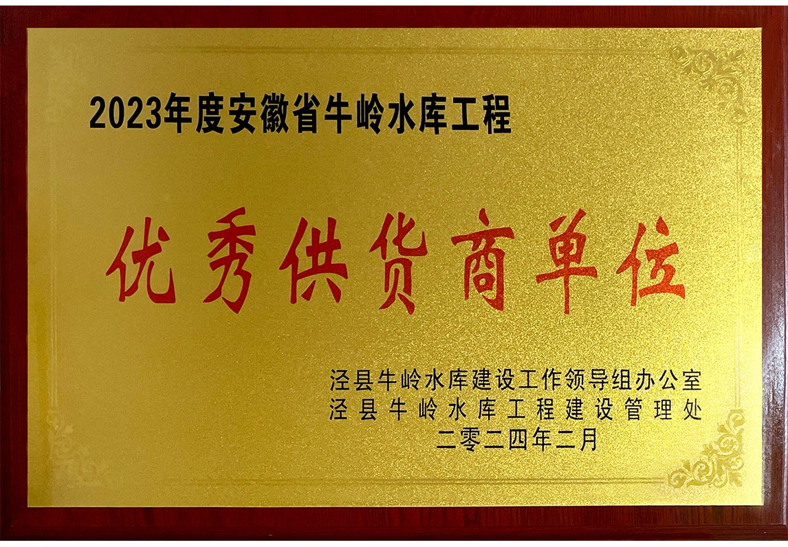 2023年度安徽省牛嶺水庫工程 優(yōu)秀供貨商單位