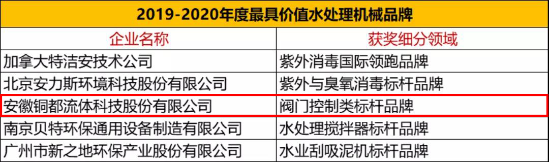 2019-2020年度“環(huán)保裝備品牌評選”結(jié)合市場業(yè)績、產(chǎn)品質(zhì)量、品牌知名度、商業(yè)模式創(chuàng)新四大維度進(jìn)行綜合評定,終甄選出“2019-2020年度價值環(huán)保裝備品牌”上榜企業(yè)。銅都流體獲此殊榮。