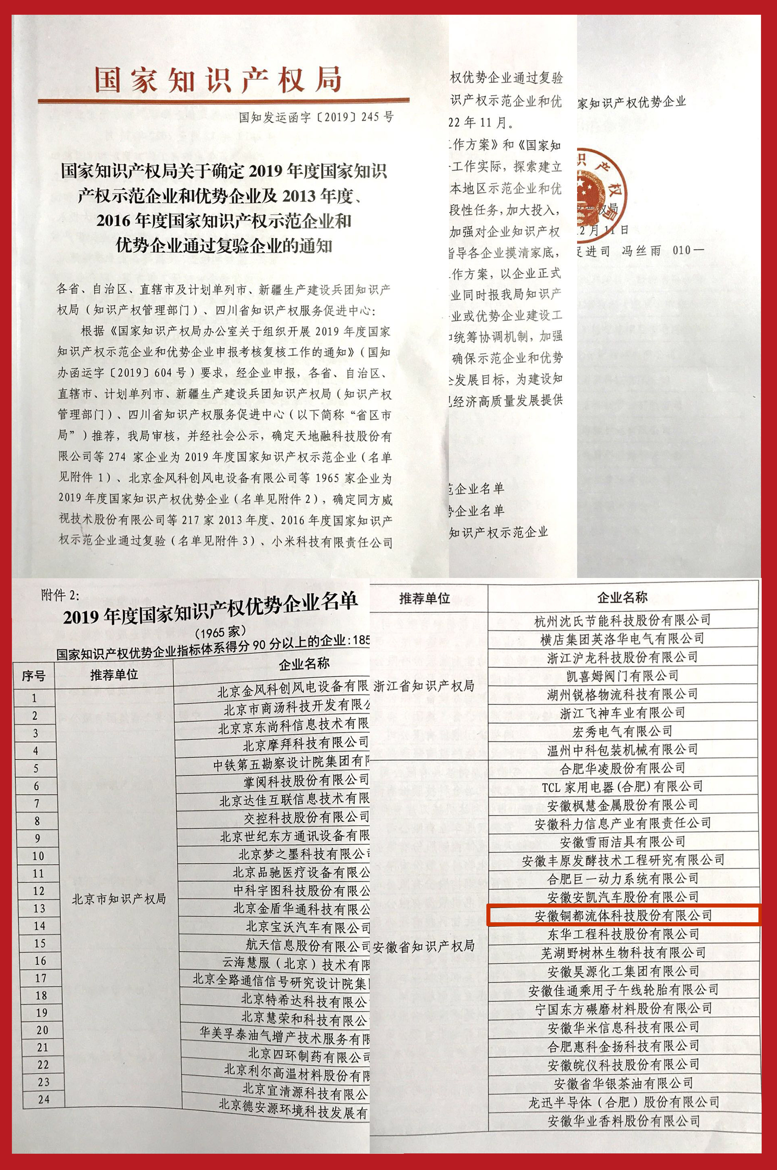 日前,國家知識產(chǎn)權(quán)局下發(fā)通知,公布了2019年度國家知識產(chǎn)權(quán)優(yōu)勢示范企業(yè)名單。銅都流體憑借良好的知識產(chǎn)權(quán)管理體系和強(qiáng)大的自主創(chuàng)新實(shí)力,榮獲“2019年度國家知識產(chǎn)權(quán)優(yōu)勢企業(yè)”稱號。