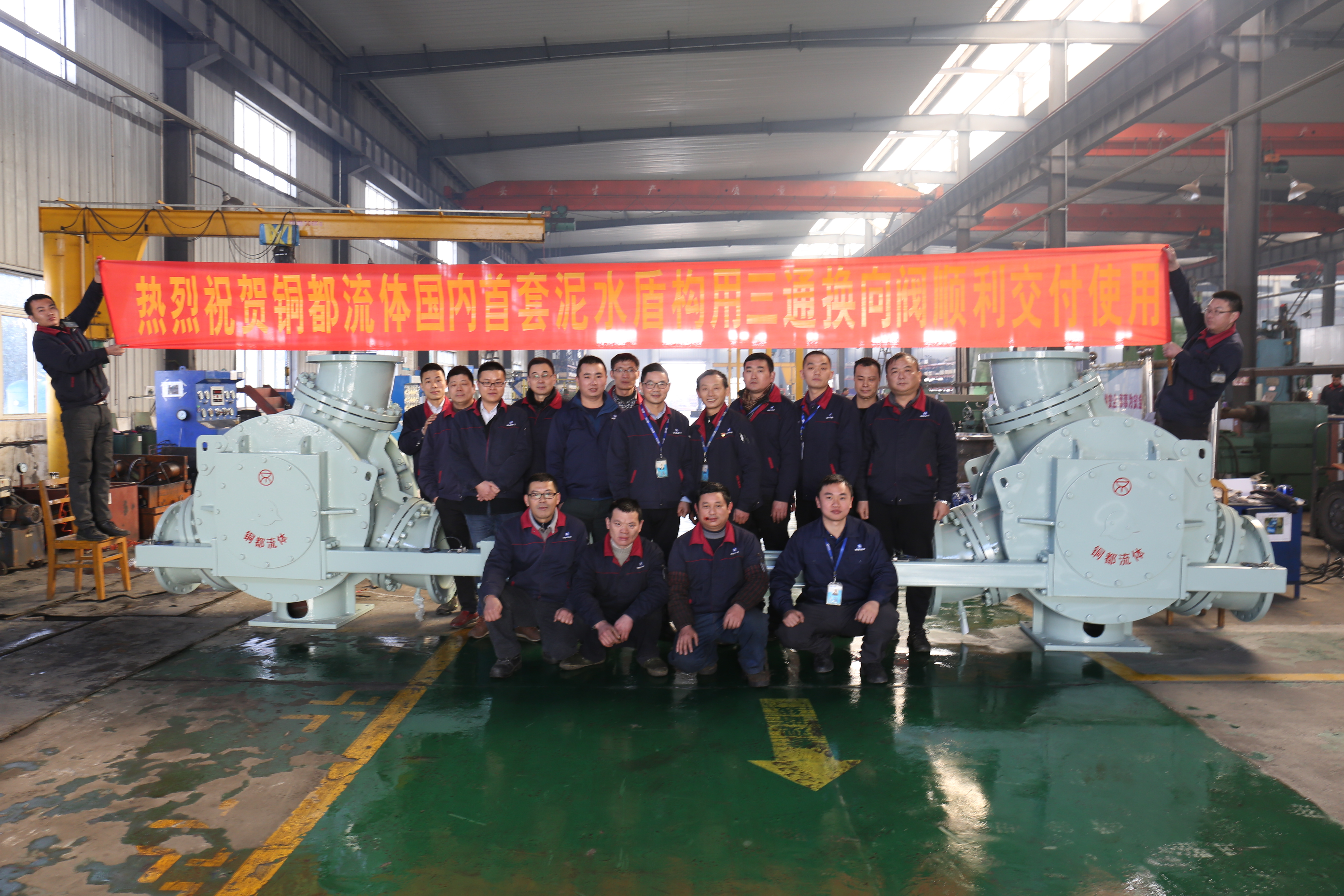 該盾構(gòu)機的核心閥門均由安徽銅都流體科技股份有限公司制造,完全以國產(chǎn)替代了進口。在此之前,國內(nèi)企業(yè)尚未掌握泥水盾構(gòu)接管器換向封堵控制技術(shù)及液動三通換向閥技術(shù),完全依賴進口。為攻克這一難關(guān),銅都流體研發(fā)團隊通過實地調(diào)研、院校合作,采用理論分析、數(shù)值模擬及試驗驗證等方法研究泥水盾構(gòu)系統(tǒng)接管延伸先進工藝、換向封堵技術(shù)及封堵控制系統(tǒng)。經(jīng)過近百次的試驗,終于成功研發(fā)出此項產(chǎn)品。目前,該項技術(shù)正在申請國家發(fā)明。