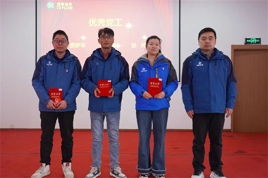 黨委書記楊凌杰為優(yōu)秀黨工頒獎(費夢華、阮先鋒、張瑋)
