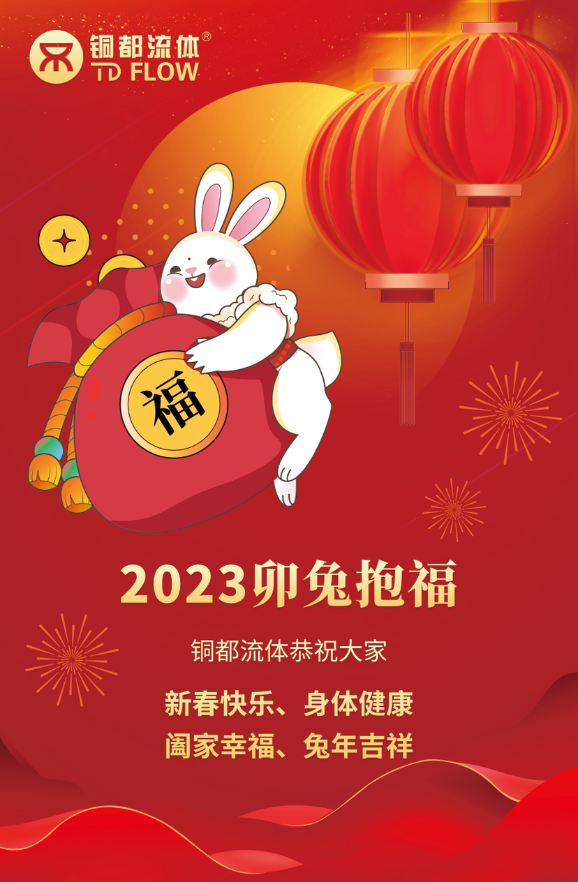 日月其邁,歲律更新。轉(zhuǎn)眼間, 2023年新春佳節(jié)正闊步走來,值此歡慶之際,銅都流體向一直關(guān)心支持公司發(fā)展的各界領(lǐng)導(dǎo)、廣大客戶朋友們以及為公司付出辛勤勞動(dòng)和無私奉獻(xiàn)的全體員工們致以衷心的感謝和誠摯的新春問候!