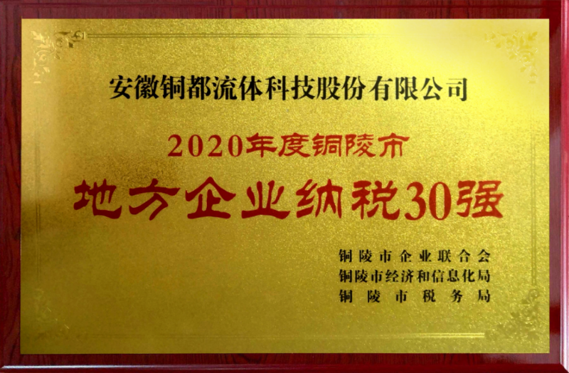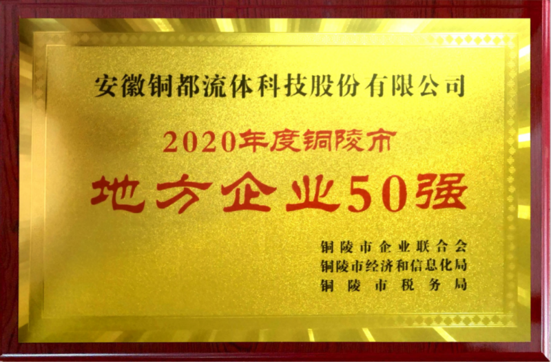 銅陵市縣(區(qū))經(jīng)信局、稅務局、縣(區(qū))企聯(lián)、開發(fā)區(qū)企業(yè)服務局開展的2020年度銅陵市“地方企業(yè)50強”、“納稅30強”評選活動名單出爐,銅都流體榜上有名。
